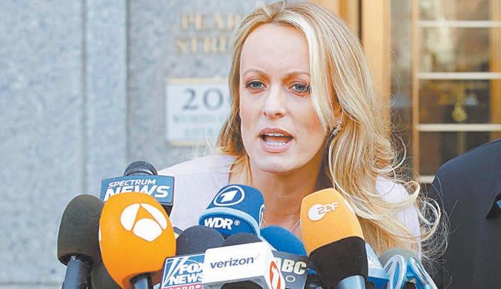 La Fiscalía sostiene que el 45º presidente de Estados Unidos (2017-2021) falsifi có documentos contables de su emporio, la Organización Trump , para ocultar un pago de 130 mil dólares a la exactriz porno alias Stormy Daniels, y evitar un escándalo sexual al fi nal de su campaña, cuando venció por un estrecho margen a Hillary Clinton.