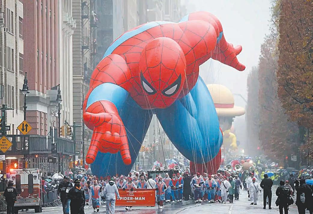 El desfile por el Día de Acción de Gracias de Macy’s , el cual se celebró por primera vez hace exactamente un siglo, estuvo marcado ayer por marchas, globos, un ambiente festivo, e incluso una breve interrupción de manifestantes propalestinos.