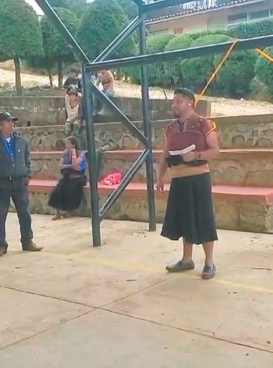 Pérez Sántiz fue vestido de mujer y amarrado en la cancha de básquetbol, donde fue obligado a grabar un video donde pide a las autoridades lleven los 1.5 millones de pesos que reclaman sus captores para su liberación. “Sólo quiero pedir que si pueden venir las corporaciones a entregar la paga”, ruega. Con la vestimenta que usan las mujeres tzotziles, Pérez Sántiz señala que los elementos de la Guardia Nacional, Ejército Mexicano y Policía Estatal, pueden llegar a la comunidad Chayomté, ubicada en el municipio de Aldama, para que hagan entrega del dinero.