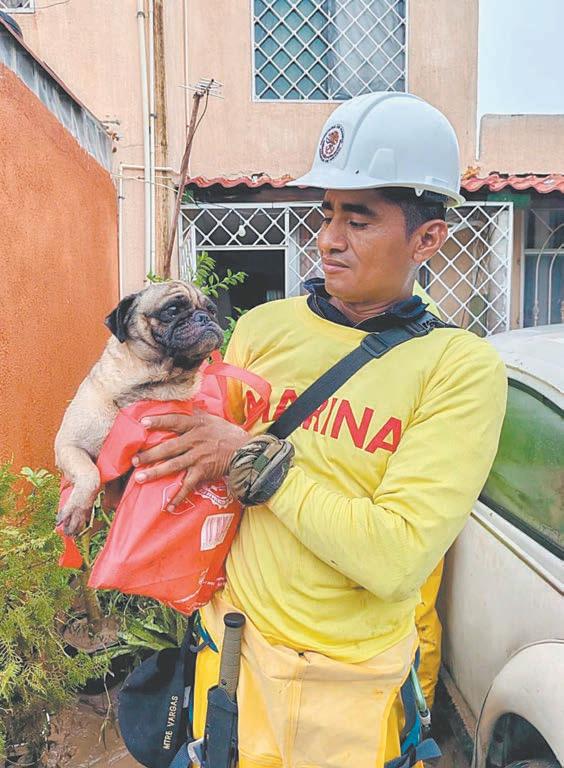 La Semar resaltó que los animales también se vieron afectados por el impacto de John, los efectivos evacuaron perros de distintas razas, gatos y gallinas que se encontraban en zonas de riesgo.
