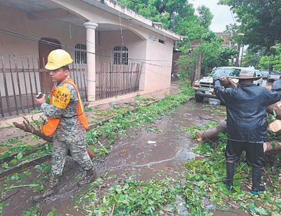Detalló que los marinos continúan con la limpieza de vialidades, levantamiento de árboles y recolección de basura, sumando 32 toneladas.