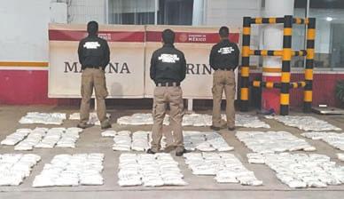 CIUDAD DE MÉXICO.- Elementos de la Secretaría de Marina (Semar) en coordinación con la Fiscalía General de la República (FGR) aseguraron ayer en el Recinto Portuario de Veracruz 290 kilos de una sustancia sólida cristalina con las características similares al clorhidrato de metanfetamina.