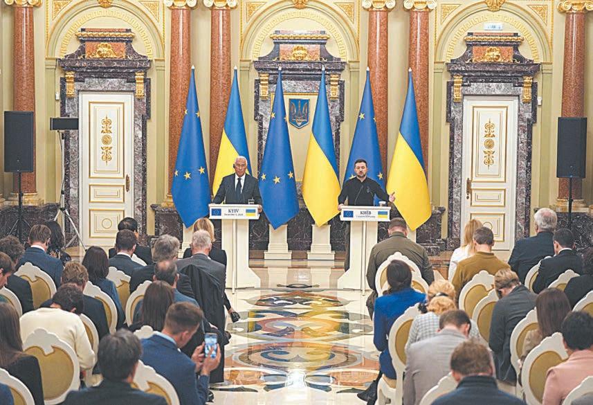 terreno en el frente, y la futura llegada de Donald Trump a la Casa Blanca hace tambalear la ayuda de Washington a los ucranianos. “Vinimos a dar un mensaje claro de que apoyamos a Ucrania y seguimos dándole todo nuestro apoyo”, dijo Costa. Para poner fin al conflicto Rusia exige que Ucrania ceda cuatro regiones del Sur y del Este que el