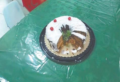Imágenes proporcionadas por la Policía y publicadas en Internet mostraron un pastel cortado de frutas secas con glaseado de mazapán blanco y cerezas al marrasquino encima.