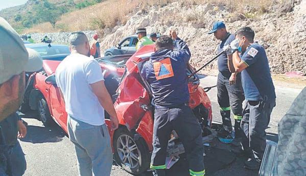 CHILPANCINGO, Gro.- Un fuerte choque entre cinco vehículos dejó un saldo de ocho personas lesionadas ayer por la mañana en las cercanías de la caseta de cobro de Palo Blanco, en Chilpancingo, Guerrero, en la Autopista del Sol. De acuerdo con el reporte de la Secretaría de Protección Civil del Estado de Guerrero, alrededor de las 11:00 horas, en el carril con dirección hacia Acapulco, en kilómetro 286, cerca del puente Alquitrán, en Chilpancingo, se impactaron cinco vehículos. El saldo fue ocho personas lesionadas que, con apoyo de ambulancias de Protección Civil y de Caminos y puentes Federales (Capufe), fueron trasladadas al