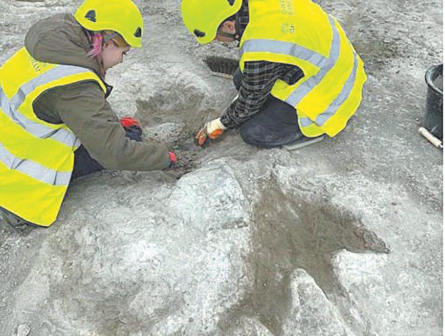 bre estas, lo que habría ayudado a congelarlas”, apuntó Richard Butler, paleobiólogo de la Universidad de Birmingham. Cuatro de los cinco dinousarios que dejaron sus rastros en el yacimiento eran saurópodos, herbívoros de cuello largo, probablemente de la especie cetiosaurus. Las huellas, mucho más grandes que la de un elefante, corresponden a ejemplares que medían hasta 18 metros de largo. El quinto animal que dejó pisadas probablemente era un megalosaurio , el depredador jurásico más grande de la actual Inglaterra, que caminaba sobre dos patas y cuyas garras se pueden ver claramente en el suelo. (Agencias)