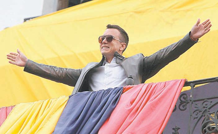 lincuencia, contra la indolencia”, expresó ayer el mandatario desde el balcón de la sede presidencial, en el Centro colonial de Quito, al dirigirse a unos mil simpatizantes que se concentraron al frente, en la Plaza de la Independencia. “Y nosotros, en cinco semanas, venceremos”, agregó Noboa, quien lucía una chaqueta de cuero y gafas, y cuyo Gobierno sostiene que no debe pedir licencia para hacer campaña. (Agencias)