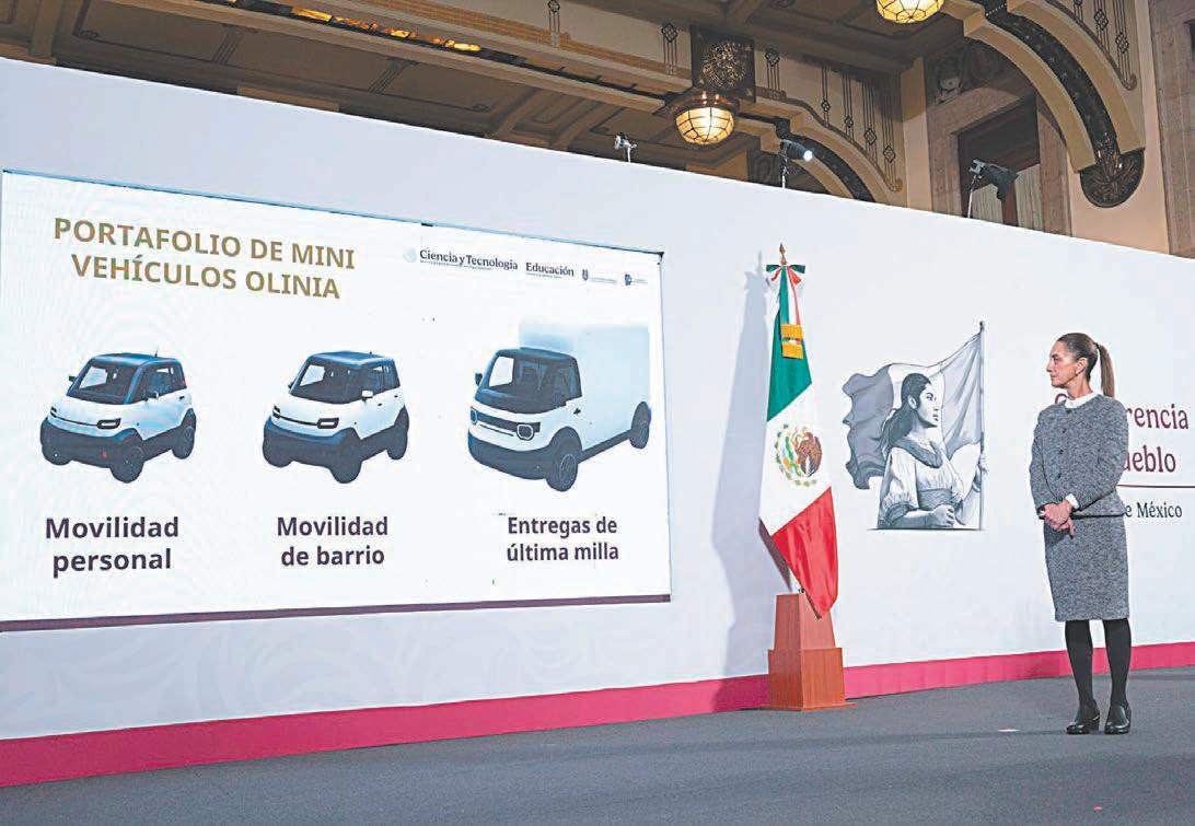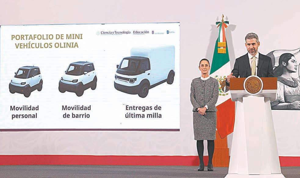 CIUDAD DE MÉXICO.- El Gobierno federal presentó ayer Olinia, la primera armadora de mini vehículos eléctricos desarrollados en México, con la propuesta de crear tres modelos: uno de uso personal, otro para movilidad de barrio y otro para entregas de última milla.