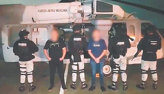 CIUDAD DE MÉXICO.- El Ejército Mexicano y la Guardia Nacional detuvieron ayer a dos presuntos integrantes del Cártel Jalisco Nueva Generación (CJNG) y hombres de confianza del líder de ese grupo criminal, Nemesio Oseguera Cervantes, alias El Mencho. Los detenidos son Salvador “N” alias Chava y Rogelio “N” alias El Gordo. Cabe destacar que el primero es identificado como quien fungía como enlace y mensajero entre El Mencho y los operadores logísticos, financieros, prestanombres y jefes regionales del CJNG. Además, les aseguraron armas,
