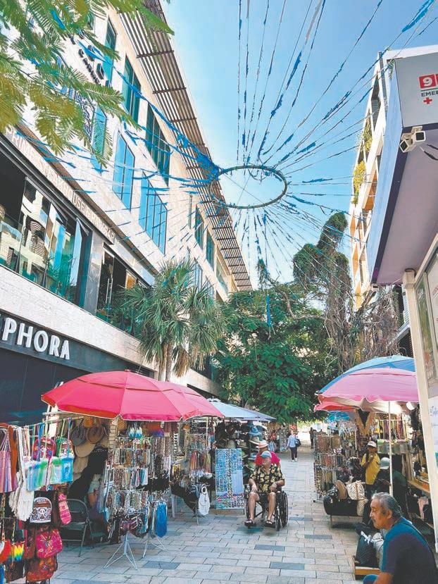 A lo largo del andador comercial en la zona turística se instalan los vendedores ambulantes con sombrillas y puestos para exponer su mercancía.- (Fernando Morcillo)