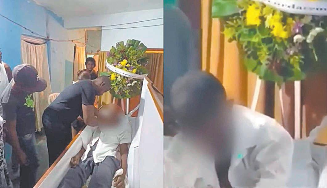 En un video que se divulgó en redes sociales, se observa a varios dolientes alrededor del ataúd abierto y en un instante, un hombre le acerca a la boca un vaso; sin embargo, no se aprecia con mayor claridad la respuesta de quien supuestamente seguía vivo.