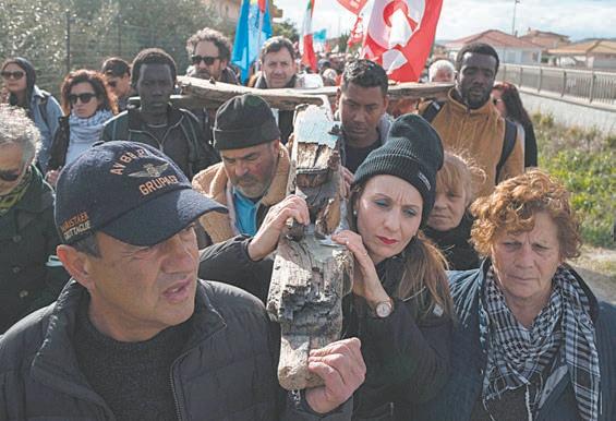 costa con palos y azadas en busca de posibles restos.