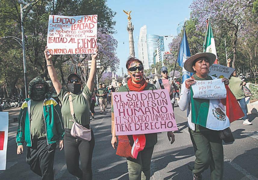 CIUDAD DE MÉXICO.- Militares en activo y retirados, así como sus familiares y simpatizantes, marcharon ayer en la Ciudad de México y en diversos Estados del país en apoyo a un grupo de soldados detenidos por su presunta participación en la masacre de Nuevo Laredo, Tamaulipas el pasado 26 de febrero.