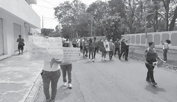 Los contingentes avanzaron coreando consignas como: “Soldado, amigo, el pueblo está contigo”, y cargando carteles y mantas con mensajes “Liberen a nuestros militares” y “Apoyo total al Ejército Mexicano”, entre otros.
