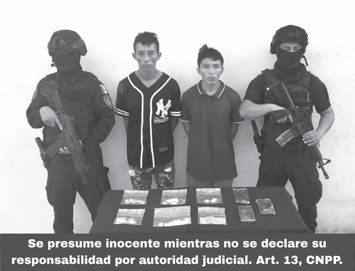 Por ello en las primeras horas del miércoles 12 de julio fue posible la captura de Ernesto “N”, alias Winiie y/o Comandante Santana, de 31 años, líder de este grupo y tres más de sus integrantes identificados como Miguel “N”, de 32 años y Karen Abinai “N”, de 18 años. Horas después, en otra acción en contra de esta célula delictiva fue detenida Adriana “N”, quien tenía en su poder dos armas de fuego largas, con car-