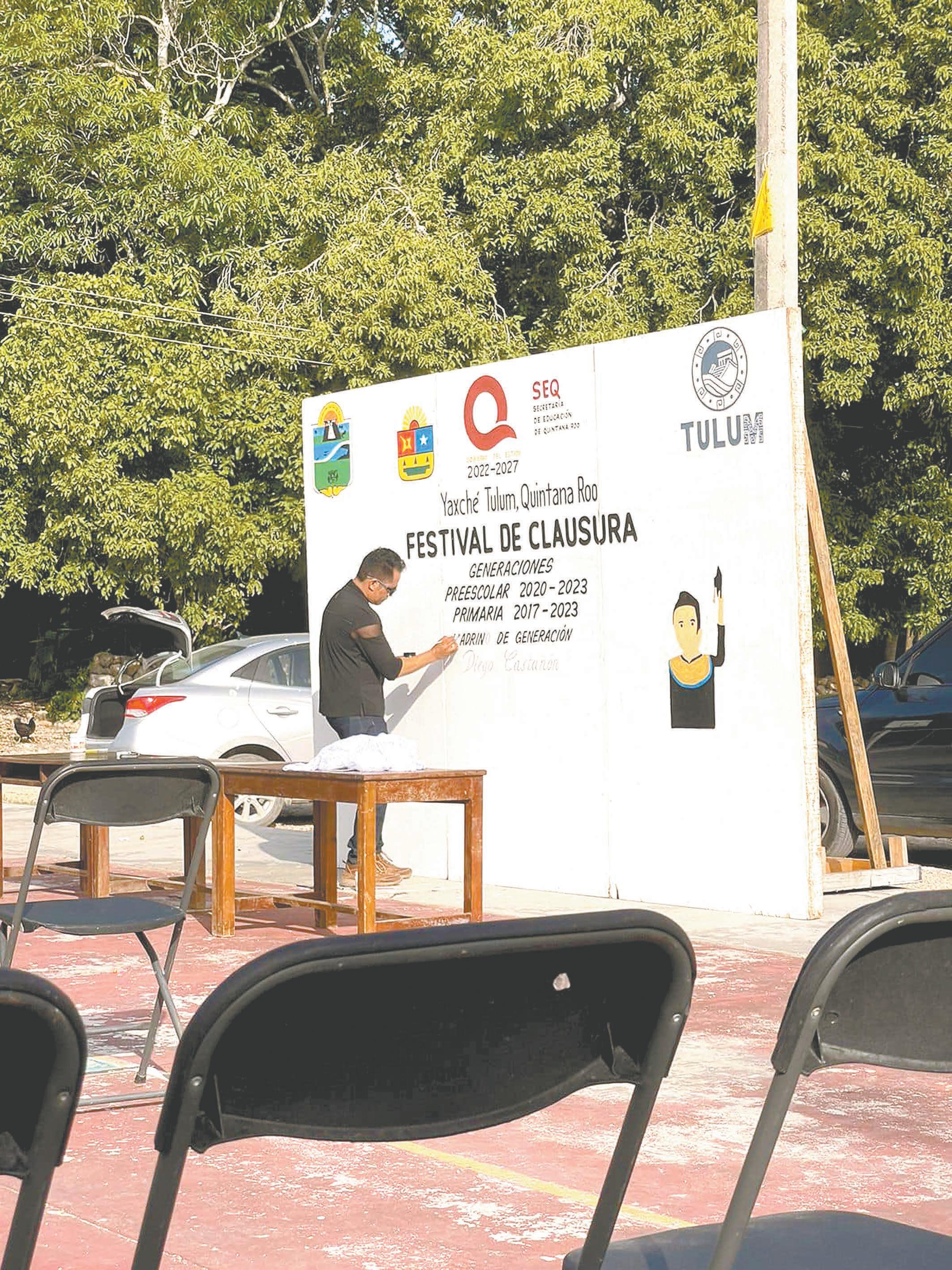 TRABAJADORES del Ayuntamiento retiraron mamparas y sillas cuando se reveló que Ileana Canul de Dzul, Presidenta del DIF, sería la madrina de la ceremonia, enYaxché .- (POR ESTO!)