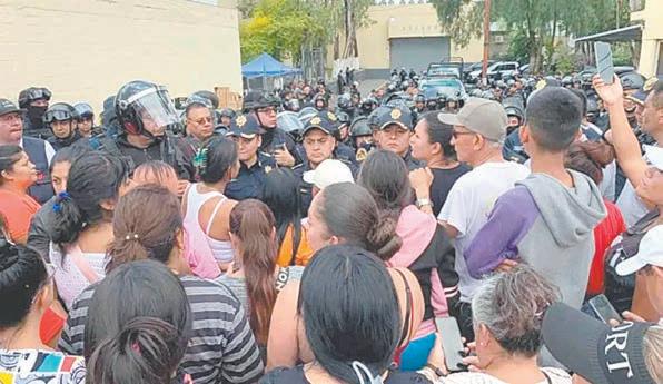 FAMILIARES de reclusos derribaron una puerta metálica del área de Aduanas y lanzaron objetos a los policías, con la intención de entrar para saber si sus parientes estaban entre los lesionados.- (Cuartoscuro)