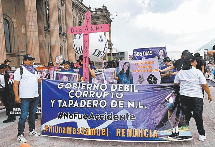 MONTERREY, NL.- Al cumplirse un año de que fue hallado el cuerpo de la joven Debanhi Escobar Bazaldúa en la cisterna de un motel del municipio de Escobedo, sus padres, Mario Escobar y Dolores Bazaldúa, encabezaron ayer una marcha desde la Explana de los Héroes, en Monterrey, hasta la Fiscalía General de Justicia estatal y después a la Fiscalía Especializada en Feminicidios.