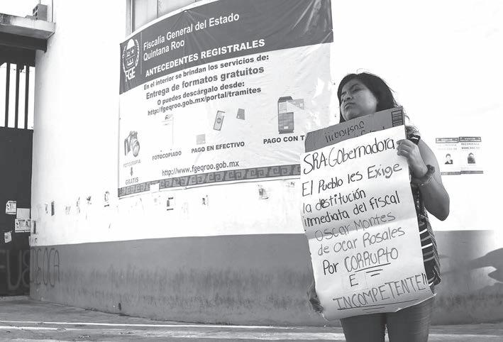 PARIENTES de otras víctimas, junto con Deysi Blanco, acudieron ayer con pancartas y bloquearon la avenida Xcaret, afuera de las instalaciones de la Fiscalía General del Estado, para demandar resultados en sus respectivas denuncias.- (M. Hernández)