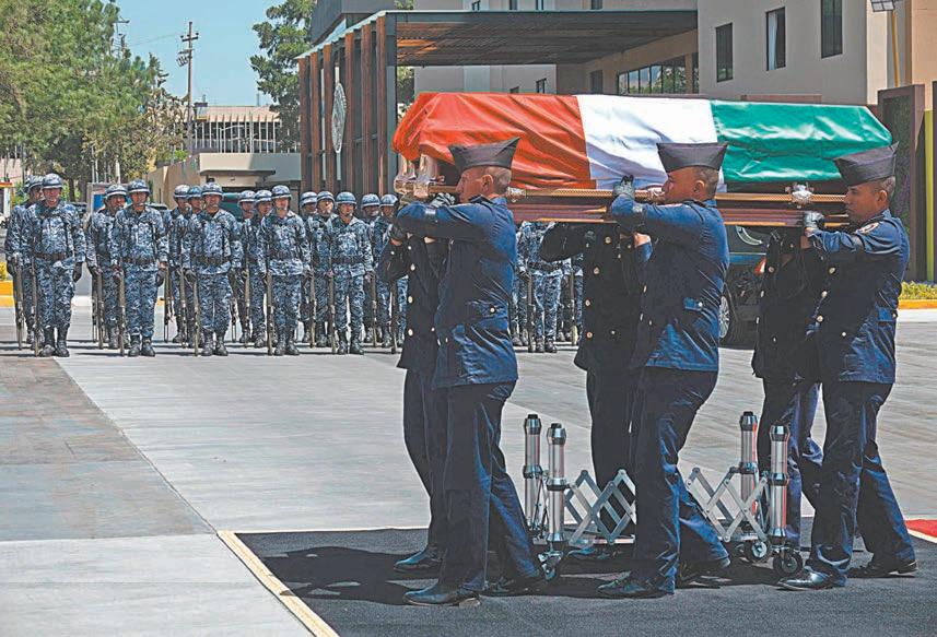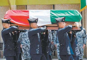Durante una breve Ceremonia de Honores Fúnebres en el Velatorio Militar, el general José Gerardo Vega Rivera, comandante de la Fuerza Aérea Mexicana entregó a los familiares una Bandera Nacional.