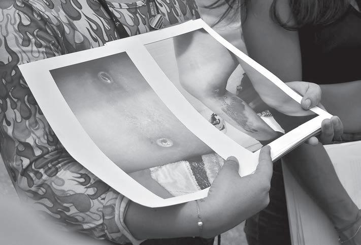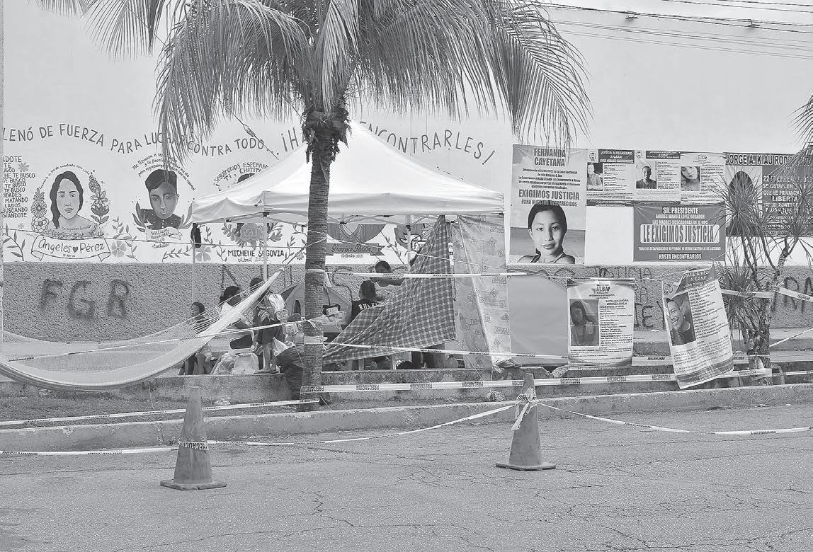 MARÍA Patrón dijo que han pasado tres años de la ausencia de su hija Francisca Mariner y no hay ningún avance en su expediente y en otros del grupo; el Fiscal Óscar Montes de Oca se acercó a ellas y les dijo que si necesitaban baños o requerían luz, podían pedirlos en el edificio.- (D. Pérez)