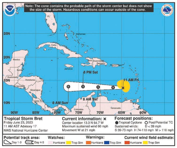 abierto. En tanto, Bret trajo vientos, lluvias fuertes y marejadas de hasta 4.5 metros la madrugada de ayer a las islas del Caribe oriental, que se preparaban para posibles deslaves e inundaciones.