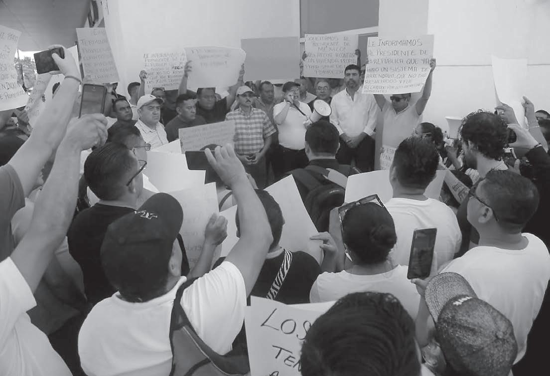 CON pancartas, los manifestantes demandaban a la dependencia facilidades para hacerse de un patrimonio, al tiempo de pedir que no se apruebe la iniciativa de arrendamiento social, debido a que la propiedad es un derecho.- (José Pinto) Las cuentas de Mara Lezama Fuente: Recuento Por Esto! / SESNSP