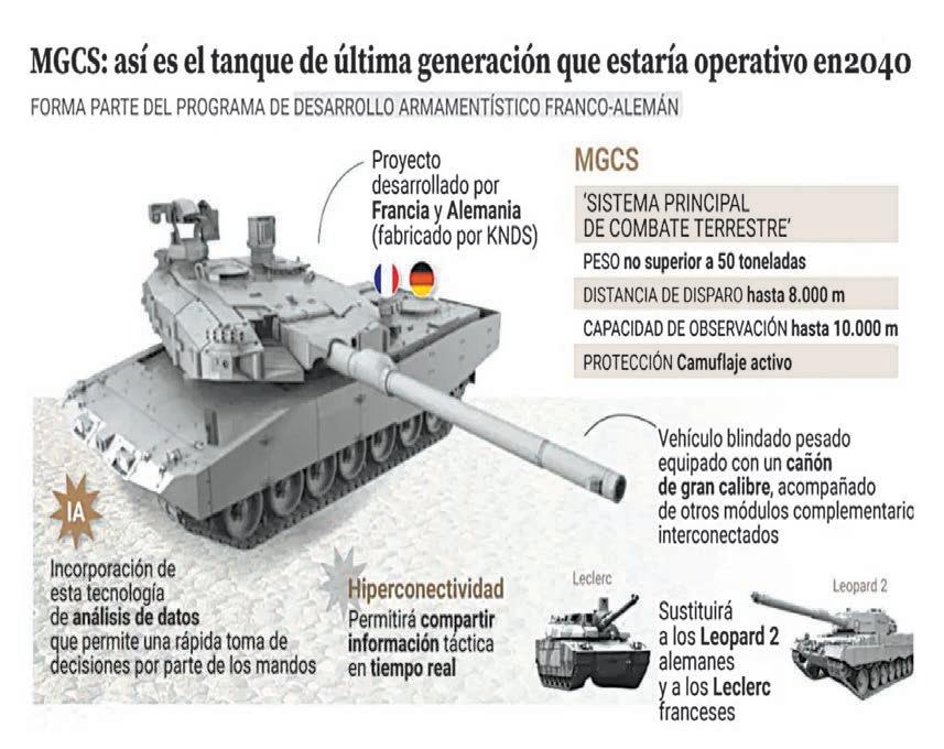 El Sistema Principal de Combate Terrestre (MGCS, por sus siglas en inglés) está llamado a sustituir de cara al 2040 a los tanques Leclerc francés y Leopard alemán, como un “sistema de sistemas”.