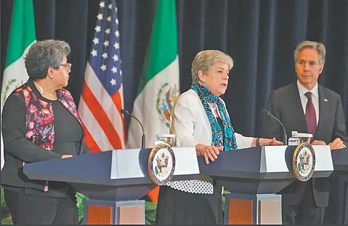 En conferencia de prensa junto a la secretaria de Economía, Raquel Buenrostro y el secretario de Estado de Estados Unidos, Antony Blinken, la canciller apuntó a la necesidad de agilizar tiempos de espera en los puntos de cruce comerciales para facilitar la entrada de productos pero también blindarla ante acciones de la delincuencia organizada.