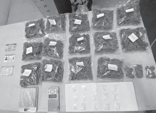 En total, los agentes de seguridad decomisaron 530 paquetes de cocaína, cientos de envoltorios de mariguana y detuvieron a seis personas.