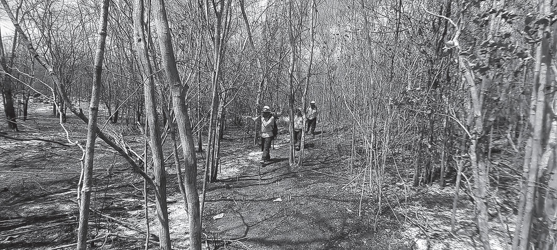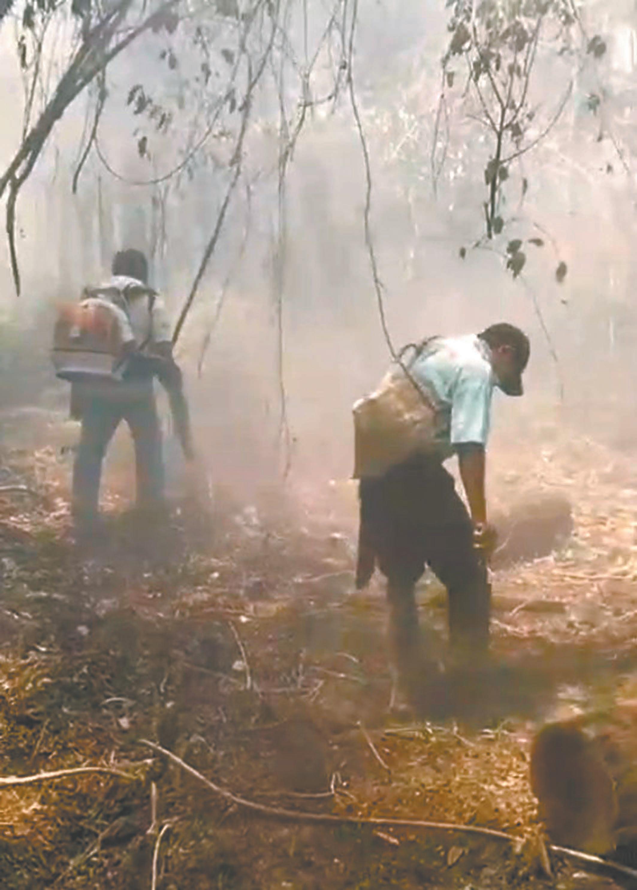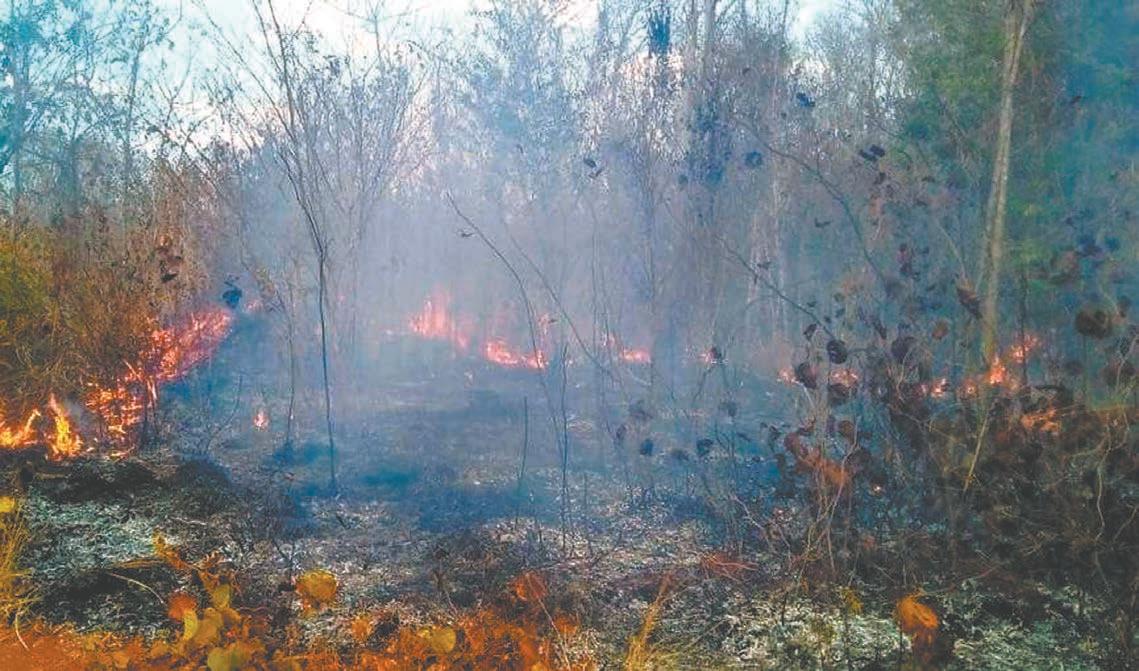 Según la dependencia desde el domingo se mantienen acciones para inhibir el fuego en la comunidad de El Potrero, a la altura del cerro Sagrado donde las llamas han consumido una extensa área arbolada.