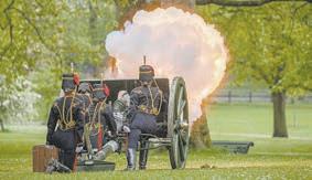 A mediodía la Royal Horse Artillery disparó 41 cañonazos desde Green Park, cerca del Palacio de Buckingham, y la Honourable Artillery Company disparó 62 desde la Torre de Londres. El Palacio no indicó dónde el Rey, de 75 años, celebrará esta fecha. Al monarca británico le detectaron un cáncer en febrero.
