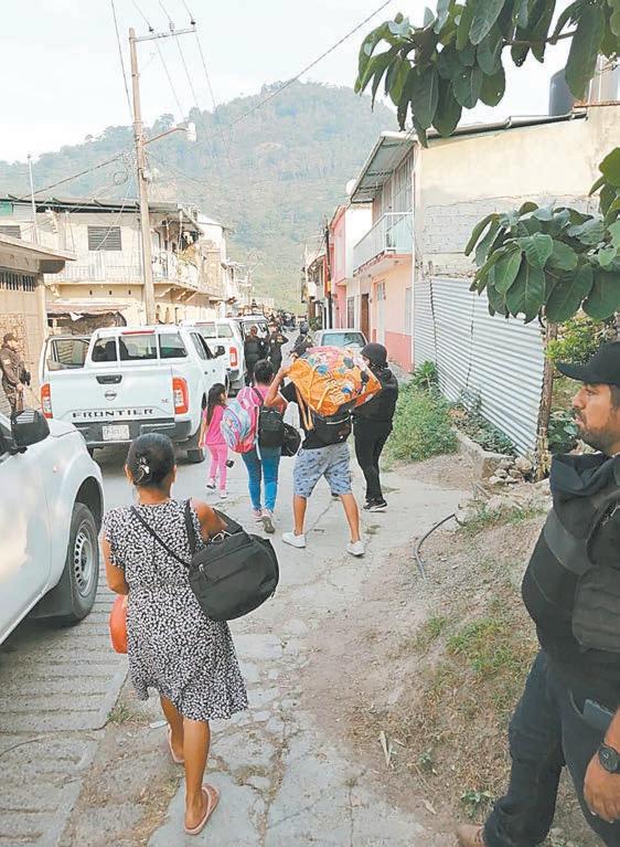 DESPUÉS de cuatro días de violencia, generada por el enfrentamiento de dos grupos criminales, los efectivos castrenses arribaron al municipio para ayudar y resguardar a la población, que inició el éxodo a otras comunidades.- (POR ESTO!)