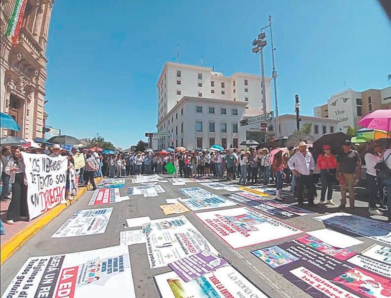 CHIHUAHUA.- Cientos de maestros marcharon ayer en Ciudad Juárez y Chihuahua, para exigir al Gobierno estatal sean entregados los nuevos libros de texto gratuitos.