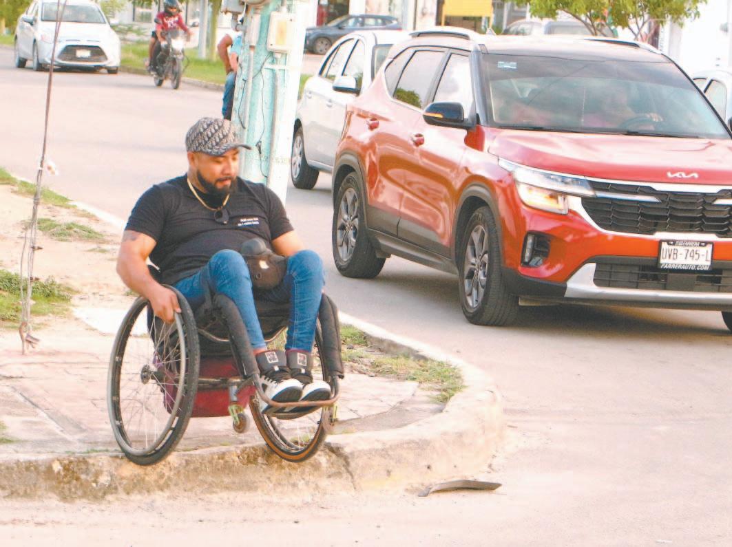 LAS personas en silla de ruedas se las ven negras para andar por las banquetas por lo que tienen que ir por el arroyo vehicular, lo que enoja a los conductores que incluso los insultan. Algunos ya han sido atropellados.- (Aarón Sánchez)