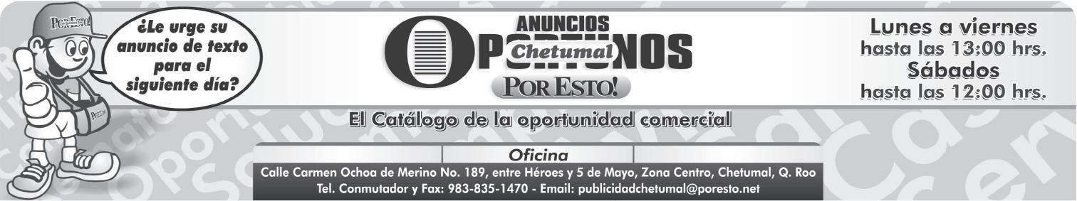 Conmutador: 998 886 8121 e-mail: publicidad@poresto.mx