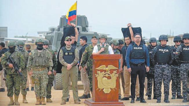 “No se sorprendan si lo que viene es drástico, sólo prepárense que las mafias tienen las horas contadas”, declaró Noboa a la prensa durante un acto en la ciudad de Durán, vecina a la portuaria Guayaquil (Suroeste) y uno de los focos de la violencia. El Mandatario llegó en un tanque de guerra, rodeado de militares fuertemente armados y vestido con chaleco y casco antibalas. “Nosotros no vamos a permitir que sigan jugando con la vida de los habitantes de Durán. Esto se acabó. Hoy estamos aquí para enfrentarlos de una buena vez y no la tendrán fácil”, agregó Noboa.