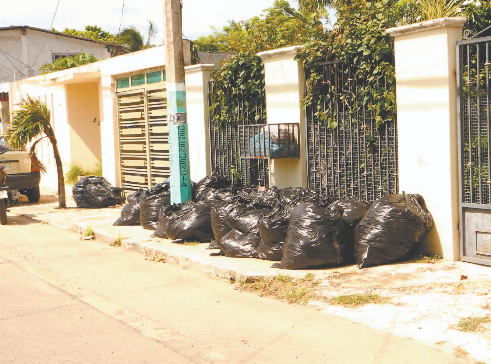 LOS camiones recolectores no pasan por las colonias de la capital, lo que ha causado que avenidas, como la Independencia y la calle Francisco I. Madero, estén saturadas de bolsas negras con desechos acumulados durante varios días. (Aarón Bautista)