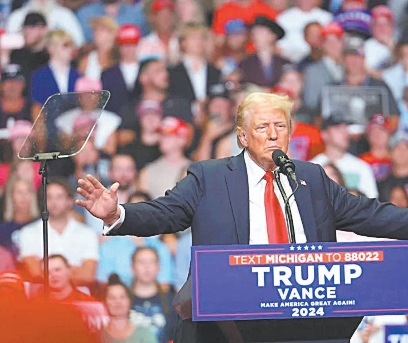 En su primer mitin con J.D. Vance, candidato republicano a la vicepresidencia, en Grand Rapids, Michigan, el candidato presidencial recordó cuando amagó al Gobierno Mexicano con aranceles y ordenó soldados para la frontera, y dijo que el presidente Andrés Manuel López Obrador, “ya no es Presidente de México”.