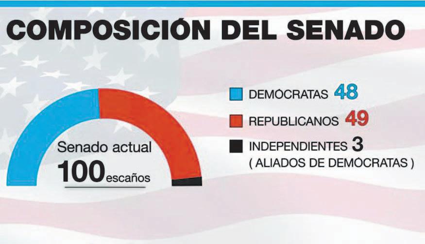 Los demócratas tienen hoy 51 escaños en el Senado y los republicanos, 49. Si los demócratas logran mantener la mitad de los