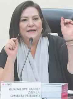 CIUDAD DE MÉXICO.- La consejera presidenta del Instituto Nacional Electoral (INE), Guadalupe Taddei Zavala, renunciará a 59 mil 558 pesos de su salario mensual, para ganar un total neto de 120 mil 398 pesos. En la página del INE se ve reflejadas las modificaciones pedidas por la Presidenta, quien desde su llegada anunció que ganaría menos que el presidente Andrés Manuel López Obrador.