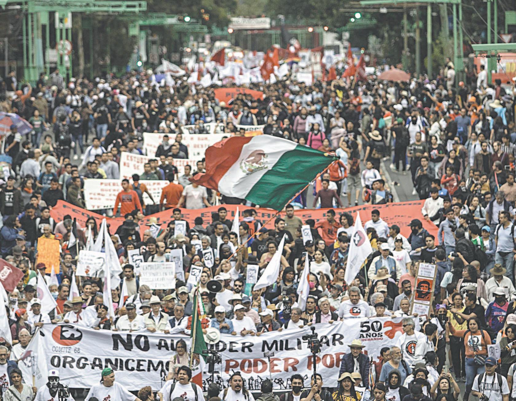 Bajo la histórica consigna de “2 de Octubre no se olvida”, la marcha se enfiló rumbo a las calles del Centro Histórico ocupando el Eje Central.