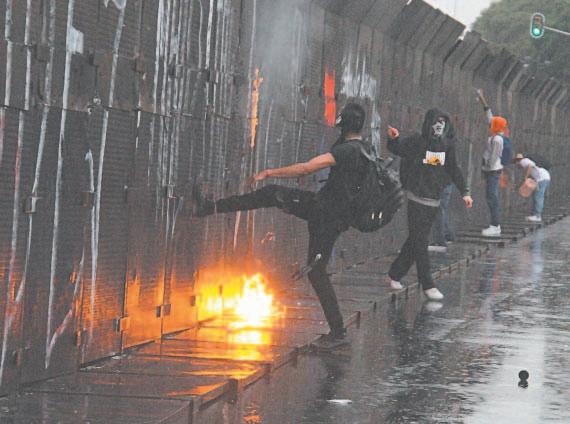 Con martillos, mazos, a patadas, petardos y bombas molotov, el autodenominado “Bloque Negro” intentó sin éxito derribar el muro metálico colocado para proteger diversos inmuebles históricos, en este caso Palacio Nacional.