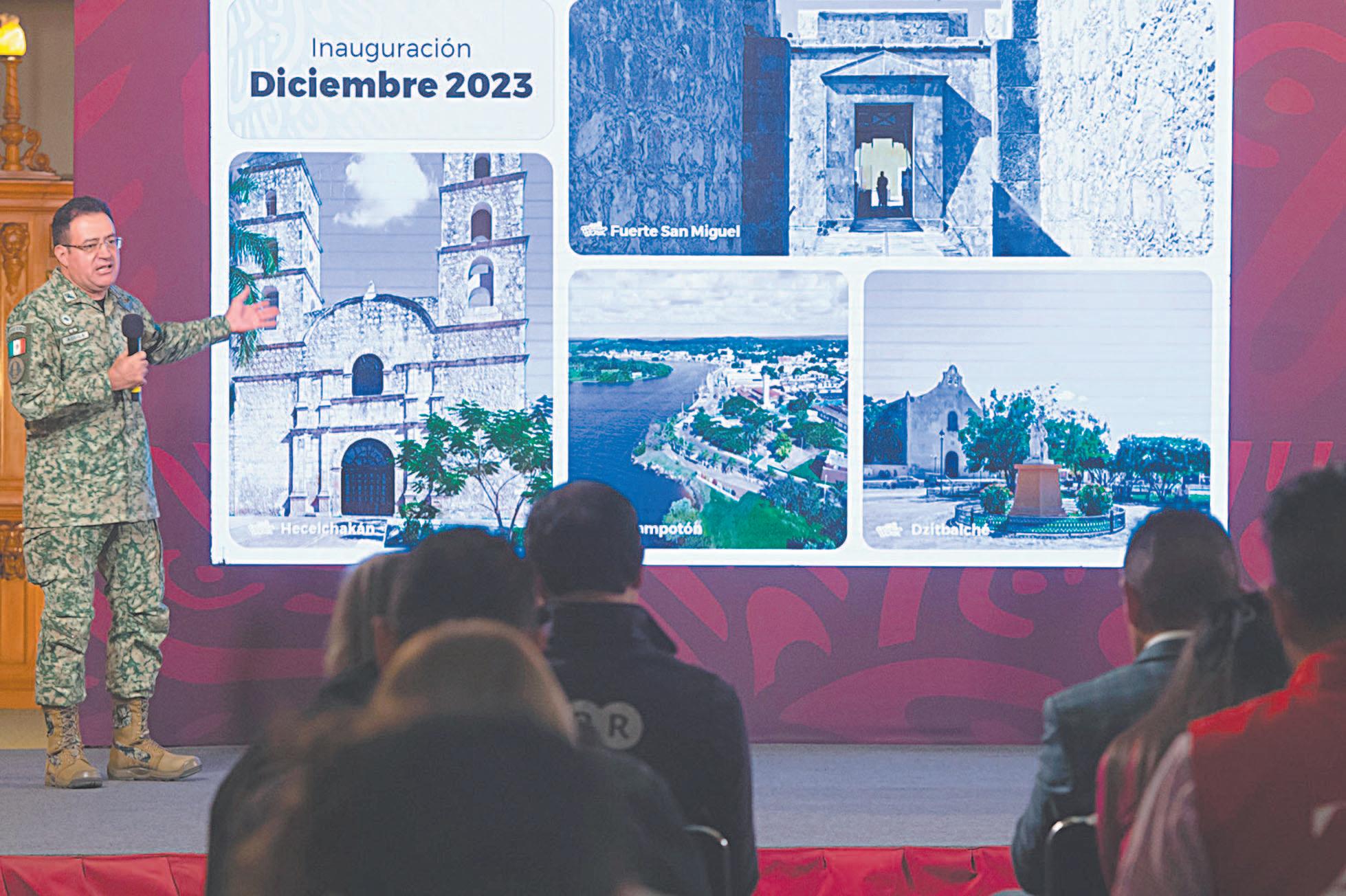 EL general Óscar David Lozano Águila, encargado del ferrocarril, dijo que las estaciones están a punto de concluirse, mientras que la cochera y base de mantenimiento llevan 60% de avance.- (POR ESTO!)