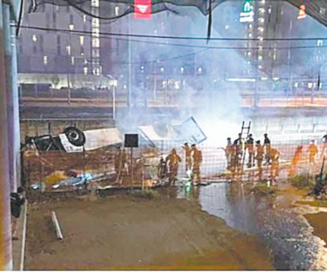 Jorge Gómez Barata Según los bomberos, el bus se incendió tras caer de un puente. (AFP)