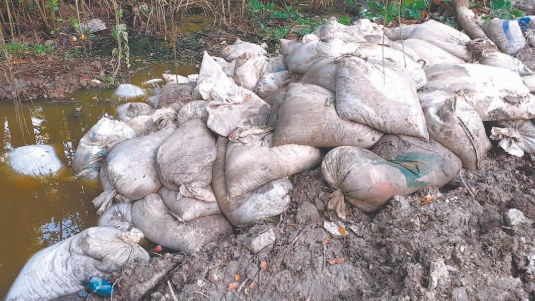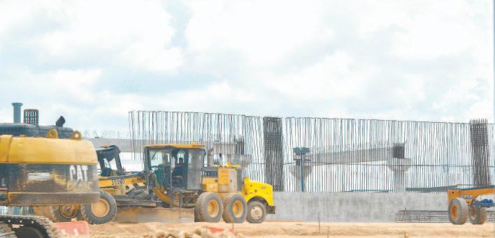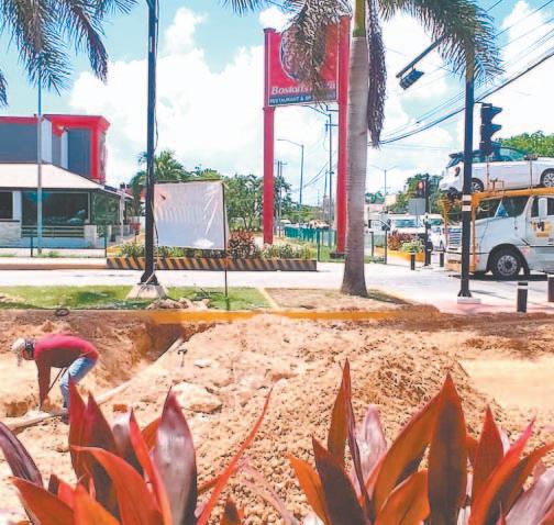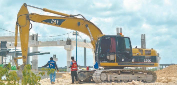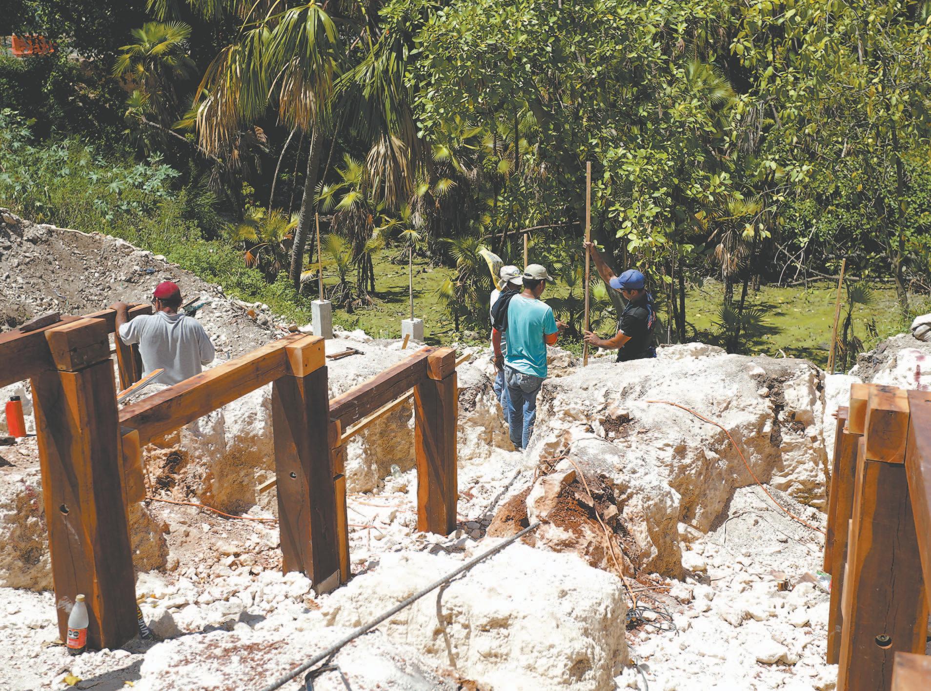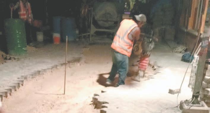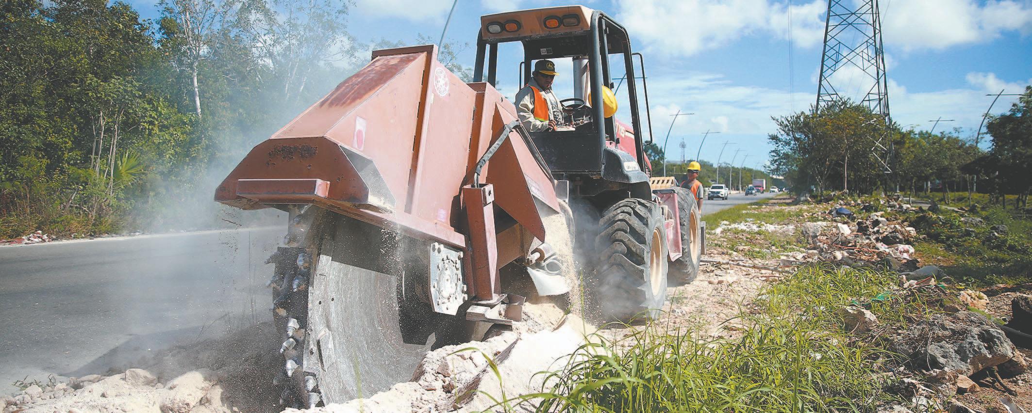 LOS trabajadores ubicados en la Carretera 180 construyen la llamada “cochera”, mientras la máquina ya está cruzando por territorio tabasqueño.- (Mario Hernández)