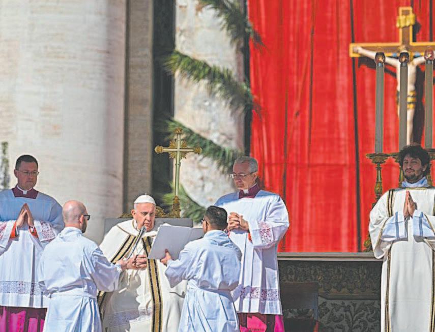 Entre las fl ores primaverales que decoraban la Plaza de San Pedro, el Papa Francisco celebró junto a docenas de prelados y decenas de miles de peregrinos y turistas el día más señalado del calendario cristiano, inspirado en la creencia cristiana de que Jesús resucitó tras su crucifixión.