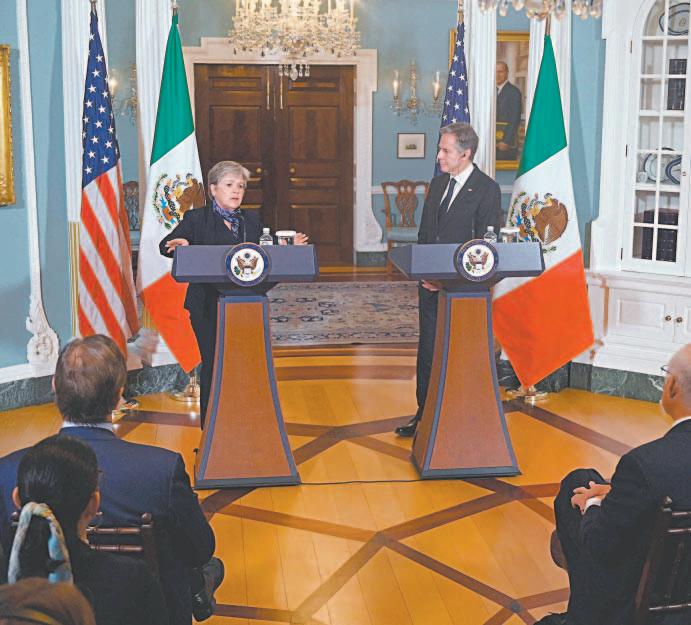 CIUDAD DE MÉXICO.- La secretaria de Relaciones Exteriores, Alicia Bárcena, tuvo su primera misión en Estados Unidos: dialogar con el secretario de Estado de Estados Unidos, Antony Blinken, sobre tráfico de armas, fentanilo, boyas y de paso llevar una carta del presidente Andrés Manuel López Obrador dirigida a Joe Biden. A dos meses de haber sido nombrada como encargada de la política exterior, Bárcena viajó a Estados Unidos donde sostuvo un encuentro bilateral con Blinken, otro con el asesor de Seguridad Nacional del presidente Biden, Jake Sullivan, una reunión con expertos de migración, así como con líderes de la comunidad mexicana y con el senador Christopher Dodd, asesor especial presidencial para las Américas. Durante una conferencia de prensa conjunta con Blinken, la nueva Canciller Mexicana explicó que hubo acuerdos con el Gobier-