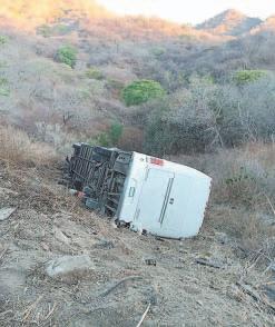 CIUDAD DE MÉXICO.- Un autobús que transportaba a un equipo de futbol infantil volcó y cayó a un barranco sobre la autopista Guadalajara-Tepic, en el municipio de Hostotipaquillo, Jalisco, lo que dejó un saldo de una persona fallecida -una mujer adulta, madre de uno de los niños- nueve personas lesionadas, una de ellas con lesiones graves y ocho más con heridas no graves- de ellos dos son menores de edad-, confirmó la gobernadora de Colima, Indira Vizcaíno.