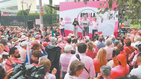 CIUDAD DE MÉXICO.- Ayer, el Frente Cívico Nacional (FCN) y la llamada Marea Rosa volvieron a salir a las calles, esta vez para concentrarse enfrente del Instituto Nacional Electoral (INE) y protestar contra una presunta sobrerrepresentación de Morena y partidos aliados en la próxima legislatura. La protesta se ubicó enfrente del INE después de que Guadalupe Acosta Naranjo, líder del FCN, hiciera público en redes sociales que este instituto les negó el acceso a su explanada. Pese a la respuesta Acosta aseguró que se concentrarían ahí y que la manifestación sería pacífica. Momentos antes de las 11:00 horas, cuando estaba previsto que iniciara la concentración, Fernando Belaunzarán tomó el micrófono